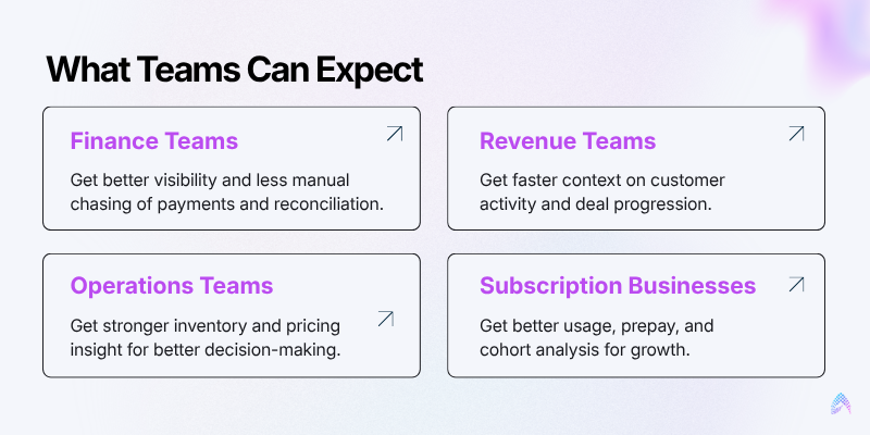 Subscription Biz Enhanced usage, prepay & cohort analysis Better churn prediction; clearer revenue quality signals